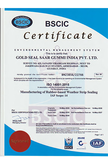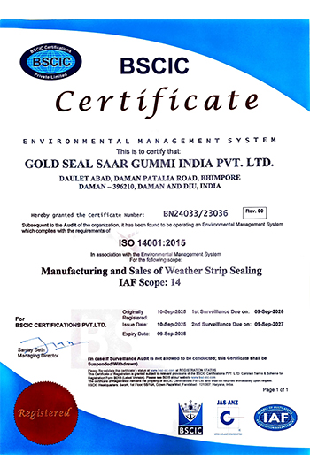 GoldSeal Saargummi product lines are essential in the performance, design, comfort and overall safety in the automotive and industrial sectors. Through our continuous problem solving and innovation techniques, we are able to meet and exceed the growing market demands. All our facilities are IATF 16949:2016 & ISO 14001:2015 certified to ensure controlled processes to repeatedly deliver, technically sound and technically innovative products. To meet the stringent customer technical specifications as well as our internal SAARGUMMI Global Quality Standards, complete Inhouse Laboratory and Testing Facility have been set up in Daman, Ahmedabad and Chennai.