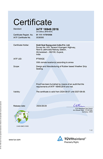 GoldSeal Saargummi product lines are essential in the performance, design, comfort and overall safety in the automotive and industrial sectors. Through our continuous problem solving and innovation techniques, we are able to meet and exceed the growing market demands. All our facilities are IATF 16949:2016 & ISO 14001:2015 certified to ensure controlled processes to repeatedly deliver, technically sound and technically innovative products. To meet the stringent customer technical specifications as well as our internal SAARGUMMI Global Quality Standards, complete Inhouse Laboratory and Testing Facility have been set up in Daman, Ahmedabad and Chennai.